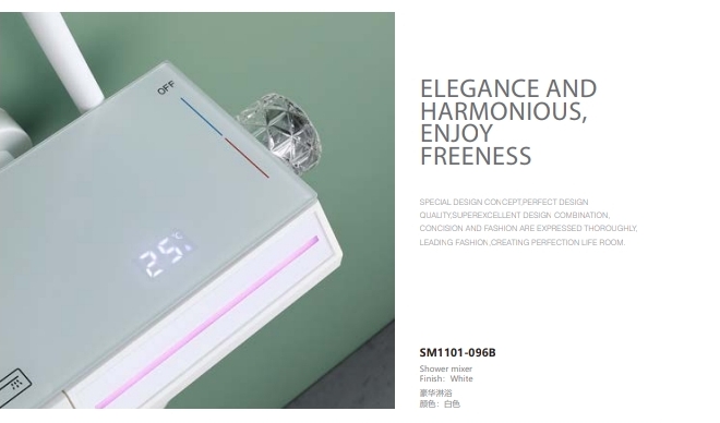 Redefine sophistication with the CrystalTouch White Shower Mixer, a seamless fusion of modern design and intelligent functionality. Its pristine white finish and crystal-textured control knob bring a refined elegance to any bathroom space. The built-in digital temperature display ensures precision and comfort with every use, while its sleek minimalist form enhances both style and practicality. Designed for those who value beauty in simplicity, the CrystalTouch mixer transforms your shower experience into one of effortless luxury and control. Errors & Omissions Excepted (E&EO